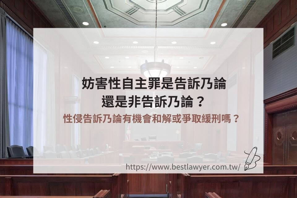 妨害性自主是什麼?我國刑法於妨害性自主罪章中規範多種性自主權遭侵害之類型,而妨害性自主罪多為非告訴乃論,代表即便與被害人和解,司法機關仍可決定起訴案件並依法做出判決。